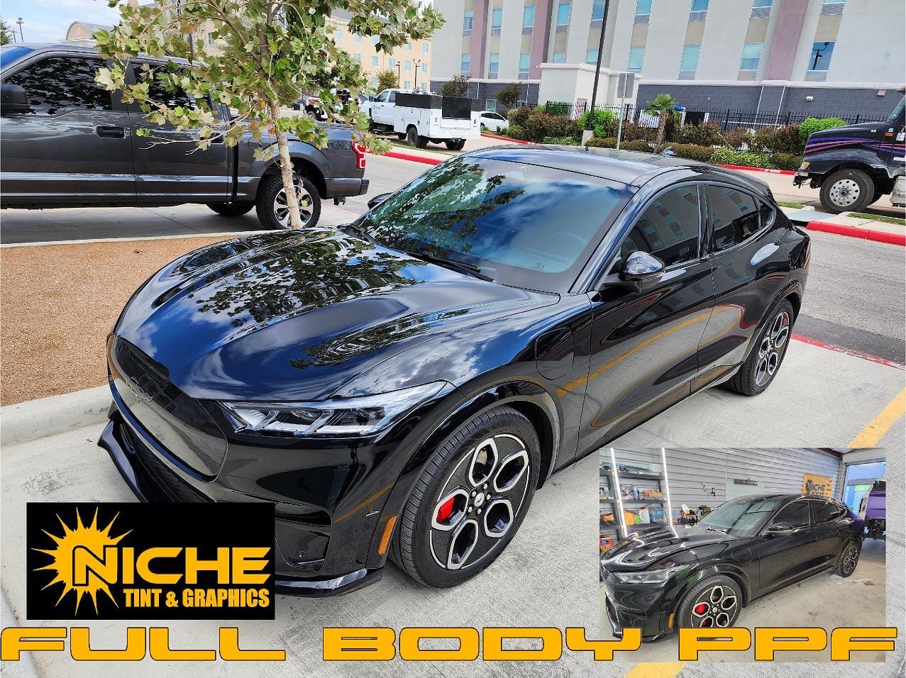 The "Black Mirror" Finish. Achieve depth and gloss beyond what paint can offer. Our specialty films—like the deep, reflective black PPF—deliver an intense, mirror-like finish while completely shielding your factory paint from damage.